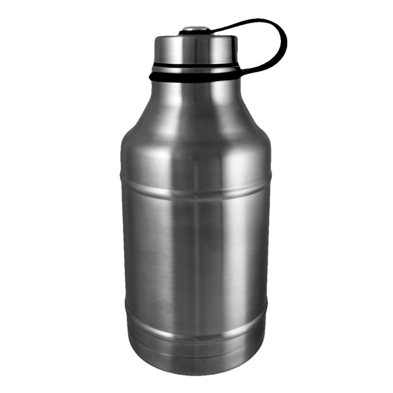 The 64 oz Brushed Stainless Vacuum Insulated Growler is a great solution for keeping your favorite craft beer cold. The unique design makes it easy to grip and the unique screw-on tethered lid keeps drinks fresher for longer. The growler is passivated against chemical reactivity and metallic taste to ensure flavor.